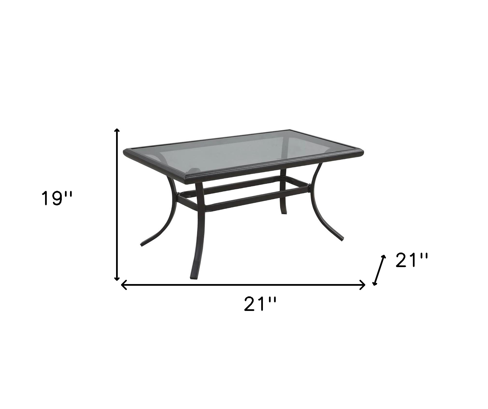 Bring your outdoor living to the next level with our premium 21-inch black metal outdoor coffee table. Our outdoor coffee table is a convenient addition to your outdoor seating area. It provides a flat surface for you to place drinks, snacks, and other items, so you won’t have to reach down to the ground or struggle to balance items on your lap. If you are looking for an easy-to-clean black tabletop, our metal design is ideal for you. This table is a classic quadratic shape, which will easily fit into any space in your backyard. Don’t miss out on this must-have outdoor accessory. 19-inch h x 21-inch w x 21-inch d.