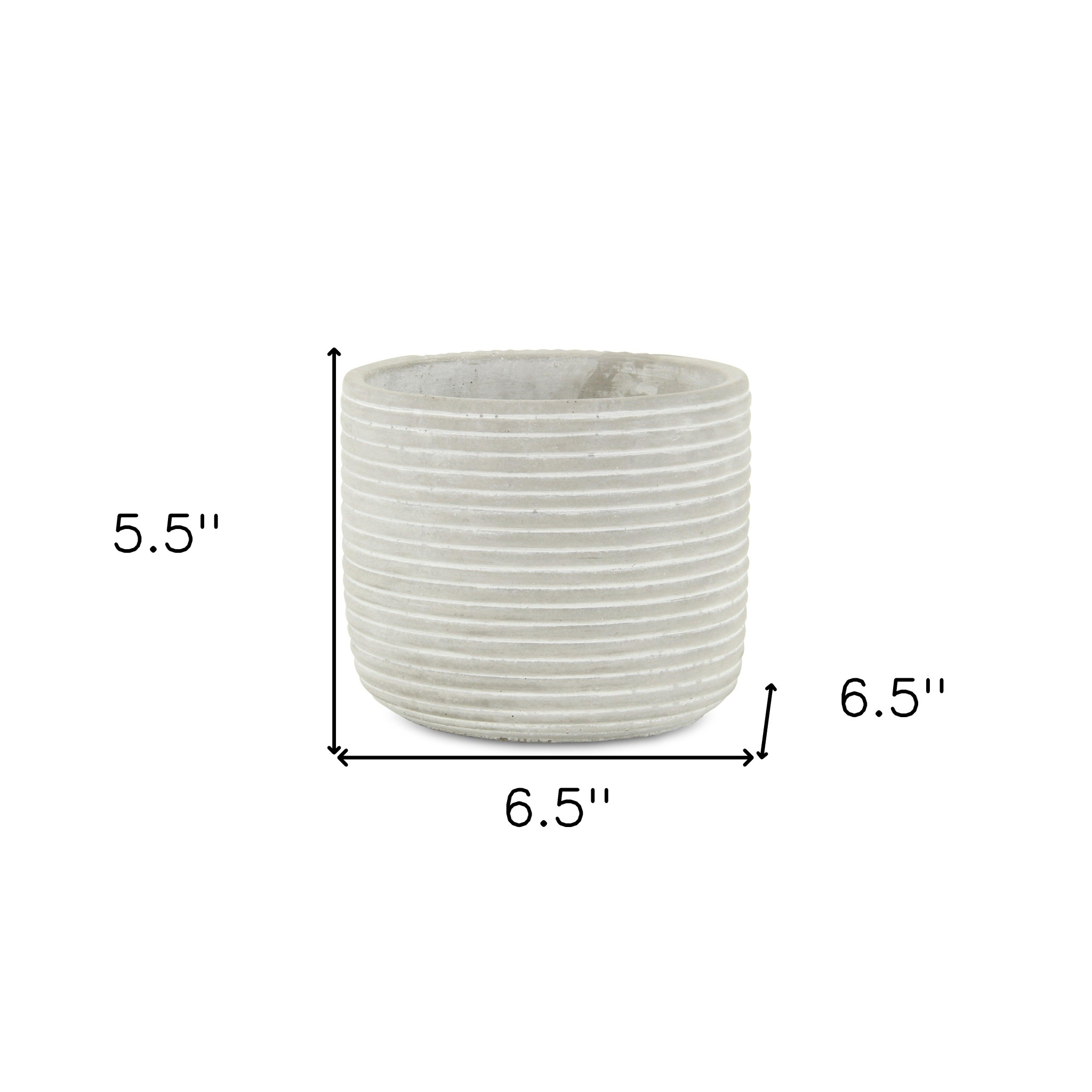 This 7-inch light gray striped cement indoor outdoor round pot planter is not only practical, but it’s also a beautiful addition to your outdoor decor and serves as a perfect way to bring life into any setting. Made of cement with a decorative striped pattern, this planter not only looks good but is built to last. The round, shape of this planter will bring a sense of wholeness to your backyard. This piece is practically designed to fit most any aesthetic indoor and outdoor space. Add that extra touch of style to your outdoor garden space with this 7-inch light gray striped cement indoor outdoor round pot planter. 5.5-inch H x 6.5-inch W x 6.5-inch D
