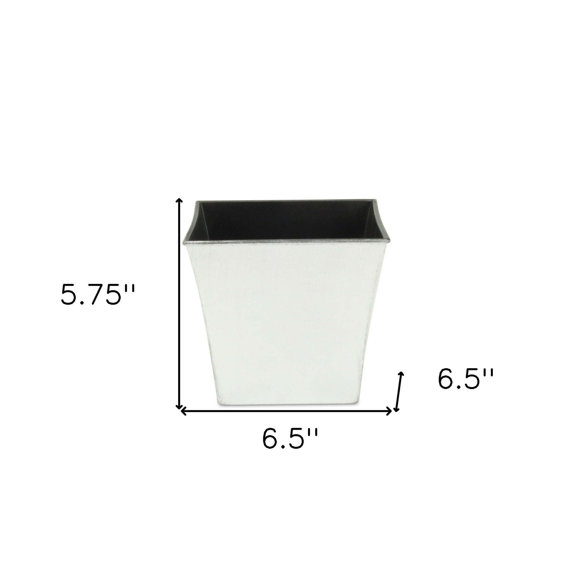 Put your plants where everyone can see them with this 7-inch silver recycled plastic indoor outdoor square pot planter, which is the perfect shape to fit in a variety of spaces. Made of recycled plastic, this solid color planter is ready to let your plants and flowers be the star of the show. The practical, straight-edged shape of this planter is perfect to add clean lines and good looks to your backyard. As a bonus, the extra protective layer of zinc will ensure the planterâs quality and durability. Marking your territory. Use this planter to let the world know that youâre proud of your plants. If youâre looking for a way to add some greenery to your space, get creative with this planter!. 5.75-inch H x 6.5-inch W x 6.5-inch D