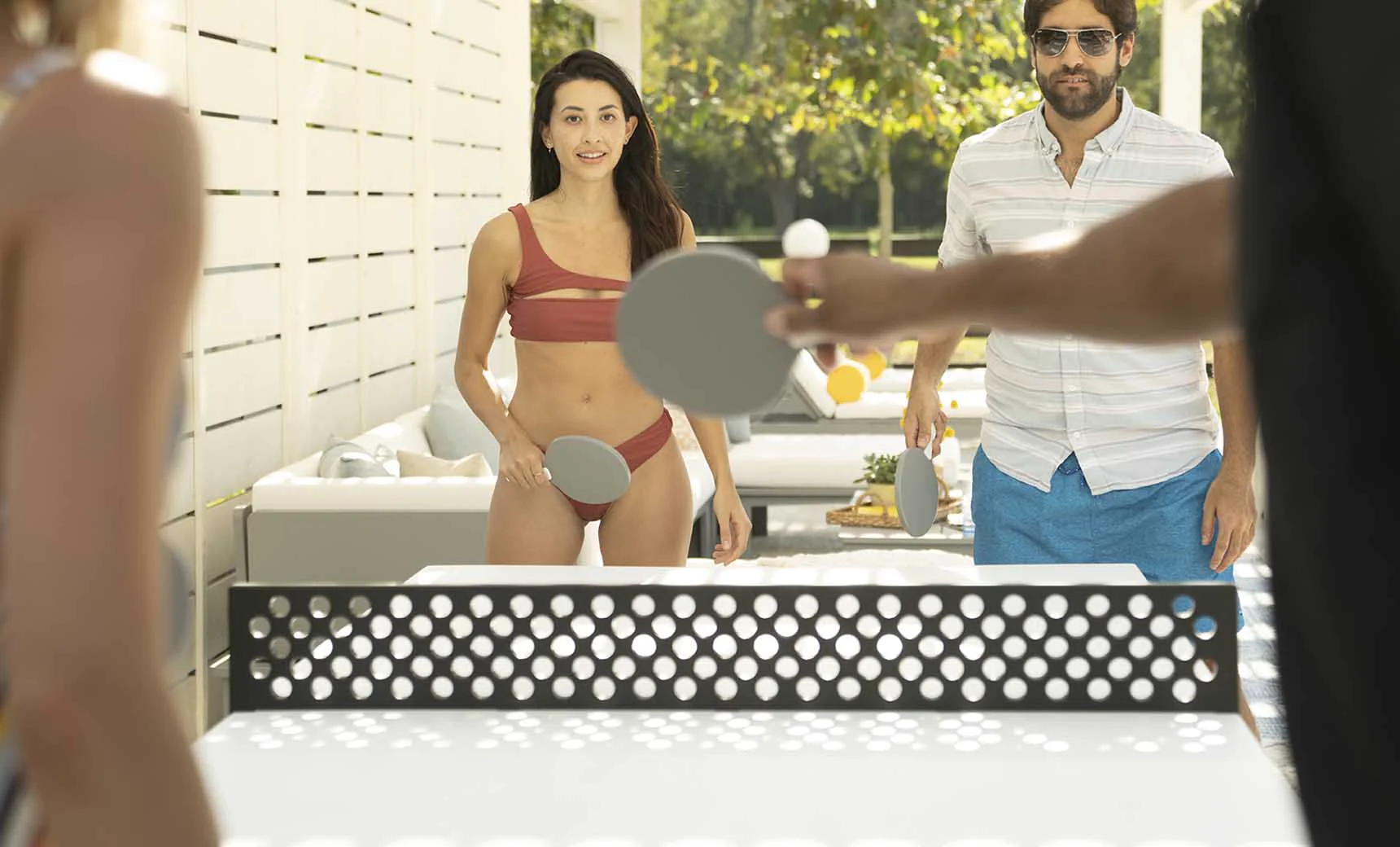 With a concealed bottle opener and integrated cup holders, you can sip and savor every moment. Plus, the ping pong net can easily be removed to seamlessly convert the table for relaxing al-fresco dining.